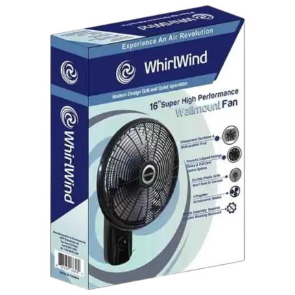 Whirlwind 16" wallmount fan is a convenient and efficient cooling solution for any space. With its compact design and easy installation, this fan can be mounted on any wall, saving valuable floor space.