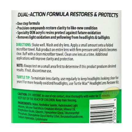 Turtle Wax 2-In-1 Headlight Cleaner And Sealant is the one step formula you need to restore clarity and seal your headlights. Infused with precision compounds and special OEM acrylic resins, this dual-action formula removes light oxidation and prevents yellowing of your vehicle's headlights and taillights. It is a must-have for any household.