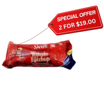 Swiss Tomato Ketchup has a sweet flavour with the perfect texture the adds flavour to your favourite foods. Swiss Ketchup is great on sandwiches, burgers, fries, and anything else you can think of!