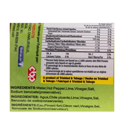 Infuse your dishes with authentic Caribbean flavour with Chief Lime Pepper (13 oz). Originating from Trinidad & Tobago, this fiery condiment brings together chunks of hot pepper, natural lime juice and vinegar to deliver a zesty kick that pairs exceptionally well with seafood, grilled meats and island-style fare.