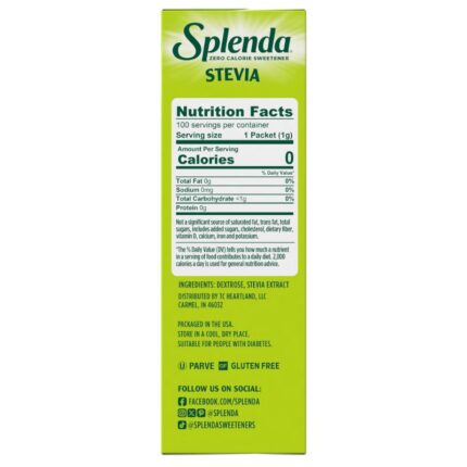 Enjoy sweetness without the calories. Splenda No Calorie Sweetener offers a convenient pack of 50 individually-wrapped packets (total weight ~50 g) that provide the sweetness of sugar—about two teaspoons each—without the added calories. Whether you’re sweetening coffee, tea, cereal, or fruit, this sugar substitute is a handy choice for those reducing sugar intake.