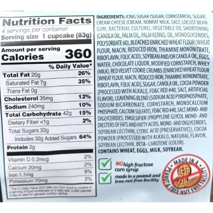 Kimberley’s Bakeshoppe Gourmet Red Velvet 11.7oz (4 Cupcakes)