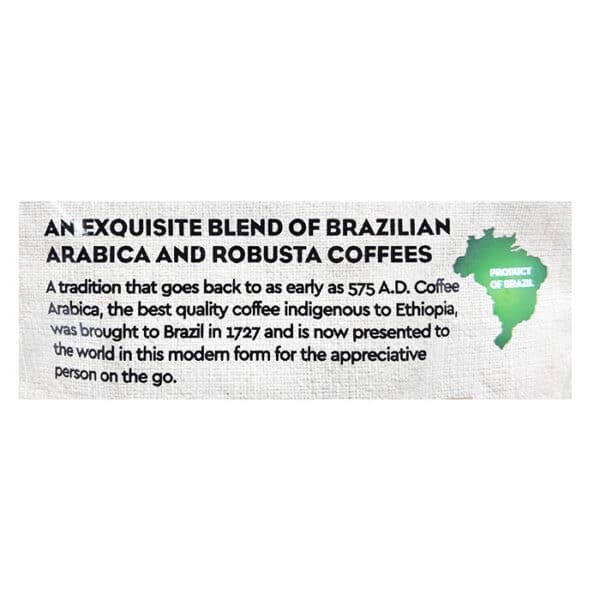 This coffee is made from 100% pure Brazilian Arabica Coffee beans to ensure an amazing aroma, smoothness and flavour to the coffee. This coffee bean contains half the amount of caffeine found in traditional Robusta beans, giving it a light and smooth finish, to make your coffee experience much better!