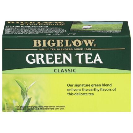 Bigelow Green Tea with Lemon tea bags are a refreshing and invigorating blend of premium green tea and zesty lemon flavor. The combination of green tea and lemon creates a harmonious balance of flavors that is both soothing and rejuvenating. Whether you enjoy it hot or iced, Bigelow Green Tea with Lemon tea bags are sure to delight your taste buds and elevate your tea-drinking experience. Add a touch of brightness to your day with this delightful blend from Bigelow.