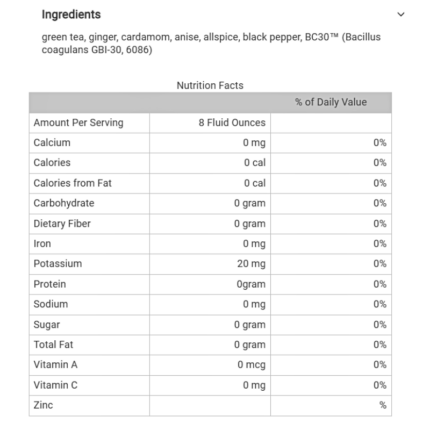 Renowned for its antioxidant properties, expertly blended with spicy ginger end notes to create a flavorful and invigorating beverage. But what sets this tea apart is the addition of BC30 probiotic, a unique innovation that supports healthy digestion by promoting the growth of beneficial bacteria in the gut. With each sip, you not only enjoy the delicious taste but also nourish your body from the inside out. Healthy never tasted so good!