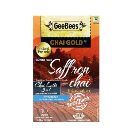 Brighten up your day with Geebees Saffron Chai Latte. So easy to prepare, with milk and sugar already added, simply pour a pack of this instant pre-mix into a cup of hot water and enjoy.
