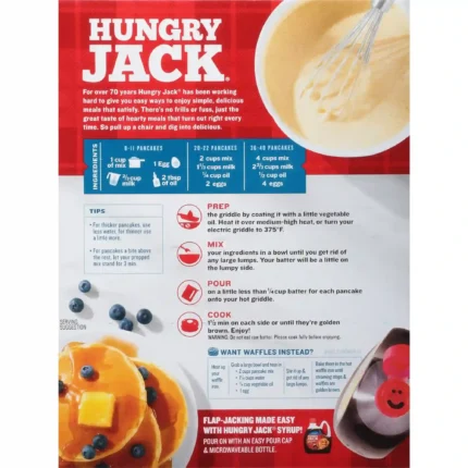 When your family wants a delicious meal at breakfast time, make this original pancakes & waffle mix! Just add milk, oil, and eggs for that real, traditional pancake taste. Sometimes you just wake up on the hungry side of the bed. That’s when you reach for a Hungry Jack baking mix. Which stack  of pancakes is your style? It’s perfectly OK if you prefer delicious waffles. Whatever you pick, we do the heavy lifting so you’re ready to stir, flip, stack, and dig in.