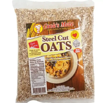 Cook's Mate Steel Cut Oats 227g is a high-quality oatmeal product. Its key features include being made from 100% steel-cut oats, which are minimally processed to retain their natural nutrients and texture. The oats are rich in fiber, protein, and essential minerals. The product offers numerous benefits, such as promoting heart health, aiding digestion, and providing sustained energy. Its unique selling points are its premium quality, superior taste, and the convenience of a 227g pack size.