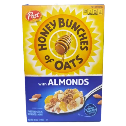 A bowl of Honey Bunches of Oats with Almonds can turn almost anyone into a morning person. The crispy flakes and crunchy oat bunches you love plus sliced almonds for a satisfying breakfast. Net Weight - 12Oz (340g)