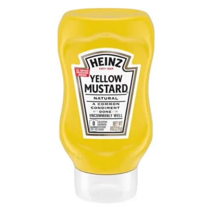 Heinz Yellow Mustard offers the trusted, flavorful taste that complements a wide range of foods. Try this yellow mustard on a burger, hot dog or sub sandwich. Made with #1 grade mustard seeds, our mustard delivers the classic mustard taste you know and love. Deliciously prepared yellow mustard will elevate any meal and will surely be a hit with the entire family. The upside-down squeeze bottle makes it easy to use without the watery mess. Whatever the occasion, Heinz Yellow Mustard delivers the rich and tangy flavor your whole family will love.