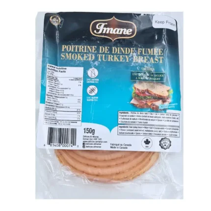 Enjoy the delicate, smoky flavor of Imane Smoked Turkey Breast—a lean and delicious choice for every occasion. This 150g pack is perfect for crafting light, flavorful meals or snacks.- Premium Quality Turkey: Tender, thinly sliced breast meat with a rich, smoky aroma.