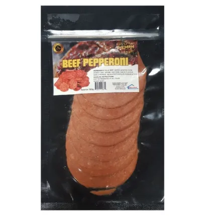 Premium Beef Pepperoni (150g) is a high-quality, flavorful pepperoni made from premium beef. Its key features include a rich, savory taste, a perfect blend of spices, and a convenient 150g size. The benefits of this product include its versatility in various dishes, its high protein content, and its long shelf life. Its unique selling points are its premium quality ingredients, authentic flavor, and superior taste compared to other pepperoni options on the market.