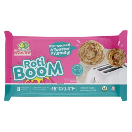 Treat yourself to the delightful flavors of Kawan Roti Boom, a popular Malaysian flatbread known for its rich, buttery layers and slightly sweet taste. Smaller and thicker than regular roti canai, Roti Boom is pan-fried to a golden crisp and is perfect as a snack, dessert, or side dish.