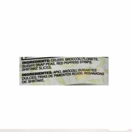 - Celery, broccoli florets, sugar snap peas, red pepper strips, shitake slices