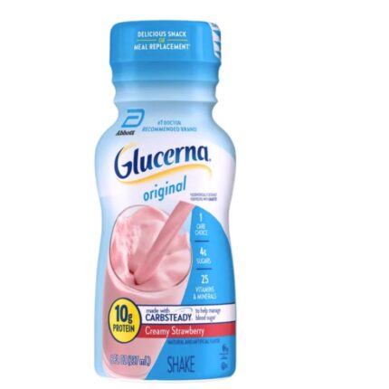 Glucerna Shake is specifically designed as a meal or snack replacement to help manage blood sugar and hunger. Strawberry flavour.
