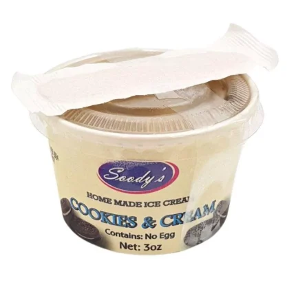Satisfy your sweet tooth with our creamy and delicious Soody's Cookies and Cream Ice Cream. Made with rich and creamy vanilla ice cream, chunks of chocolate sandwich cookies are mixed in for an indulgent treat. The perfect balance of sweet and crunchy, this ice cream is sure to become a family favorite. Whether you're looking for a cool dessert after a hot day, or want to treat yourself to a sweet snack, our Cookies and Cream Ice Cream is the perfect choice. So, why wait? Grab a spoon and dig in today