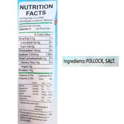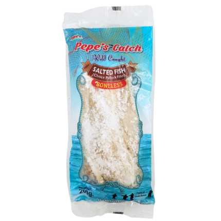 Pepe’s Catch Salted Fish Boneless is made from a wild-caught Pollock fillet, making it ideal for your favourite Trinidadian Buljol recipe. Mix with various vegetables, such as tomatoes, pimento peppers, and herbs. Commonly enjoyed with provision, you can also eat this fish delight with bread or crackers, for a satisfying and tasty meal.