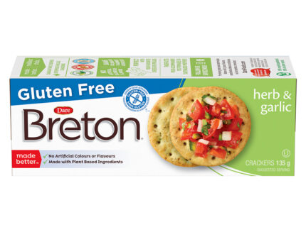 Enjoy the tender-crisp texture and wholesome taste of Breton with our Breton Gluten Free Herb and Garlic Crackers. Certified gluten-free and with a burst of savoury herb and garlic these crackers contain no artificial colours or flavours. Snack on them on their own or with cheese, spreads, soups and more.