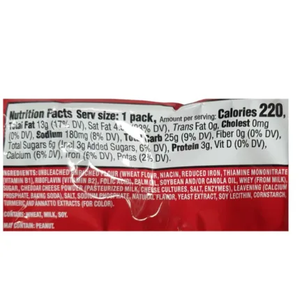 Snack-sized, cheesy, and oh-so-craveable! Ritz Bits Cheese Minis pack all the fun and flavor of Ritz with a creamy cheese filling sandwiched between two crisp mini crackers. Perfectly portioned in a 42g bag, these bite-sized snacks are great for on-the-go cravings, lunch boxes, or simply a quick, satisfying snack. With a classic taste and a delightful crunch, Ritz Bits Cheese Minis are the ultimate treat for cheese lovers of all ages.