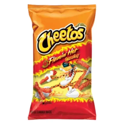 Hot, spicy flavour packed into crunchy, cheesy snacks. CHEETOS Crunchy FLAMIN’ HOT Cheese Flavored Snacks are full of flavour and made with real cheese.