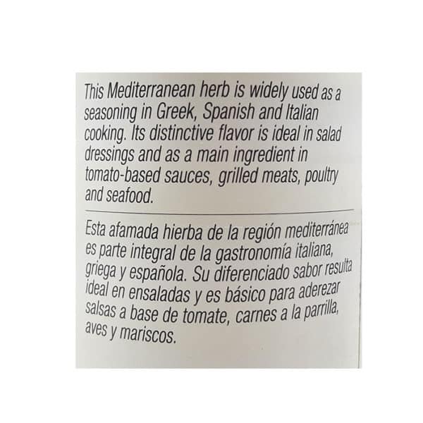 This native Mediterranean region herb is widely used as a seasoning in Greek, Spanish and Italian cooking. It's ideal as a distinctive flavour in salad dressings and as the main ingredient in tomato-based sauces, grilled meat and shellfish.