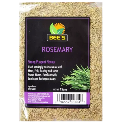 Enjoy the aromatic fragrance and strong pungent flavor of Bee's Crushed Rosemary. It imparts both sweet and bright notes to food and works well in a variety of dishes. This versatile herb is perfect for meats, fish, poultry and adds savory flavor to dipping oils, pizza, grilled vegetables, and more.Net Weight: 15g