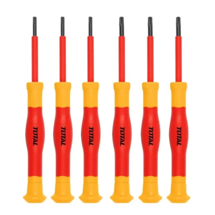 Get ready to power through any electrical project with the Total Super Driver Insulated 6‑Piece Set (TTL0501)! These vibrant, hard-working screwdrivers are not only rugged—they’re insulated to protect up to 1,000 V, keeping you safe as you tinker. The set includes three slotted drivers (3.0×75 mm, 4.0×100 mm, and 6.5×150 mm) plus three Phillips heads (PH‑0, PH‑1, PH‑2), each with magnetic tips for easy screw-holding. Built with comfy ergonomic handles and certified to VDE standards, these tools are perfect for electricians, hobbyists, or any household hero looking for reliability and flair in one stylish kit!