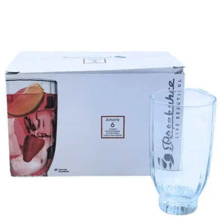 Elevate your dining and entertaining experience with the Pasabahce Amore Glass Set (6 Piece). Featuring six beautifully designed glasses, each with a sleek, modern silhouette, this set is perfect for serving a variety of beverages, from refreshing water to cocktails, juices, or even wine.