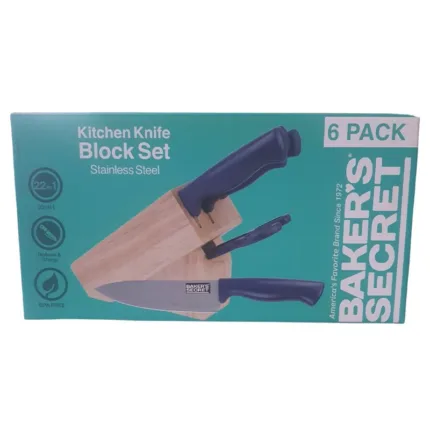 Upgrade your kitchen essentials with the Baker’s Secret 6-Piece Knife Block Set (#BS40727). This versatile and durable set includes all the key knives you need for daily food prep, housed in a stylish wooden block for convenient storage and easy access. Each knife features precision-honed stainless steel blades for smooth, effortless cutting, and ergonomically designed handles for a comfortable, secure grip. Whether you're slicing, chopping, or mincing, this set delivers reliable performance for both beginner cooks and experienced chefs.
