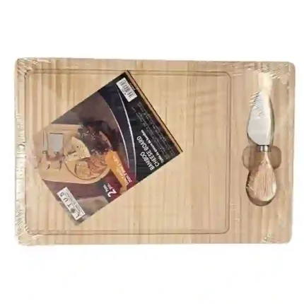 - Includes: 7" santoku Knife, 8" carving knife, 8" bread knife, 6.5" carving fork, 5.5" boning knife, 5" utility knife, 3.5" paring knife, 4.5" steak knives, a pair of kitchen shears, and 17" pine wood cutting board