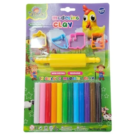 KidArt Modeling Clay is a brightly colored, non-toxic, and non-drying clay designed for children aged 3 and up. Each 200 g package includes 12 vibrant clay sticks, encouraging creativity through molding, sculpting, and storytelling.