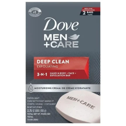 Dove Men + Care Deep Clean 3‑in‑1 Bar Soap is specially formulated to cleanse face, body, and hands with a crisp, refreshing lather that leaves skin feeling deeply clean yet balanced. Infused with purifying micrograins, it gently exfoliates and washes away bacteria, sweat, dirt, and excess oil, while the signature ¼ moisturizing cream helps maintain natural hydration to prevent dryness and tightness common with ordinary soaps.