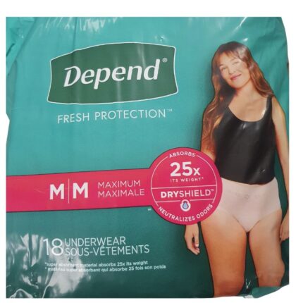 Depend Fit-Flex Women’s Incontinence Underwear is extremely soft, yet strong and keeps you protected from bladder leaks with DryShield Technology, providing you all day comfort, guaranteed.* Absorbent material instantly locks in wetness and odors, providing long lasting dryness and a more comfortable** experience. Designed with the SureFit waistband to help keep it in place and form-fitting elastic strands to provide a discreet fit under clothing, unlike bulky adult diapers.