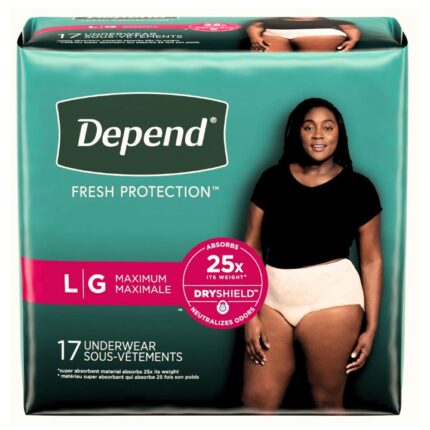 Help protect against bladder leaks with Depend Fresh Protection Adult Incontinence & Postpartum Bladder Leak Underwear for Women with Maximum Absorbency—for all day protection guaranteed. Depend is unlike bulky adult diapers. Our bladder leakage underwear features a super absorbent core that absorbs 25x its weight, turns liquid into gel, and helps neutralize odors. Our technology features a liner that helps keep you dry throughout the day by wicking wetness away from your skin. Comfortably live your life with bladder leak underwear that features a discreet fit, soft and smooth fabric, and a high-performance waistband that helps keep underwear securely in place.