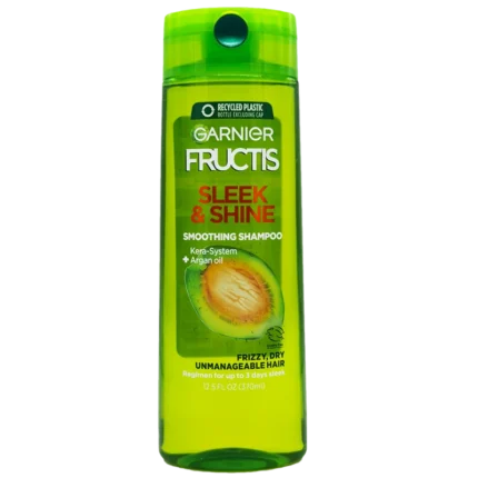 Frizzy, dry, unmanageable hair? Garnier Fructis Sleek and Shine Smoothing Shampoo combines a natural superfruit with scientific ingredients in its exclusive smoothing system, for visibly smoother, shiner hair. The sleek and shine shampoo is infused with exclusive duo ingredients.