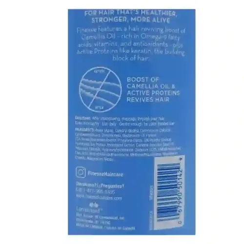 Finesse Moisturizing Hair 2-In-1 Shampoo and Conditioner is silk protein-enriched which conditions and protects dry, coarse hair and naturally curly hair. Controls frizzies and helps prevent split ends. It smoothes and improves the cuticle making every strand softer and more touchable for hair that's irresistibly alluring to the eye.