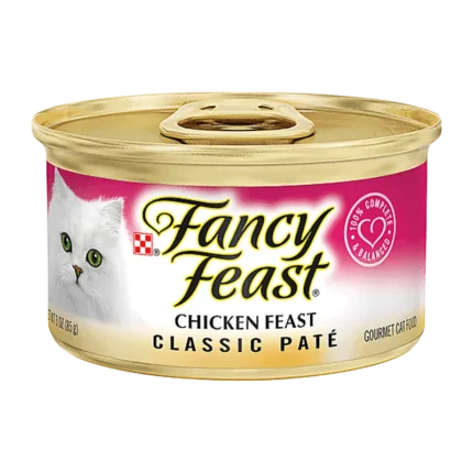 Fancy Feast Classic Pate Chicken Gourmet Cat Food is a finely ground paté made with real chicken. A fine paté with a deliciously smooth texture cats love. Crafted with real, high-quality chicken, 100% complete and balanced for adult cats. Delicious, high-quality in every detail.