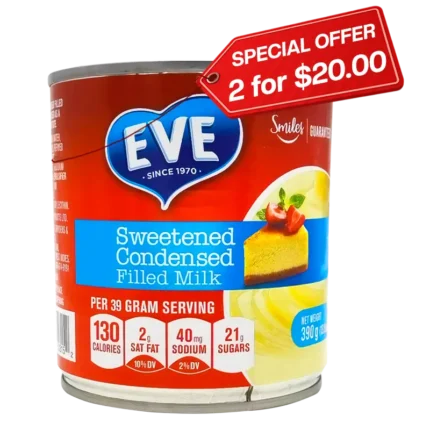 For all your baking and sweet treats, use Eve Sweetened Condensed Filled Milk. Great to use for both traditional Indian and western desserts! Net Weight: 390g (13.8 oz)