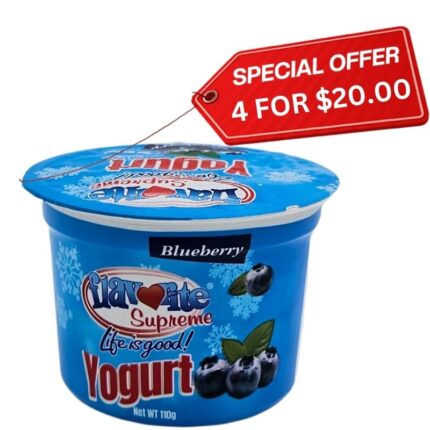 Flavorite Blueberry Yogurt (110g) is a delicious and creamy yogurt made with real blueberries. Packed with probiotics for gut health, this yogurt is a convenient and nutritious snack option. Its key features include a rich blueberry flavor, smooth texture, and convenient single-serving size. The benefits of Flavorite Blueberry Yogurt include being a good source of calcium, protein, and live active cultures. Its unique selling points are its delicious taste, probiotic content, and convenient packaging for on-the-go consumption.
