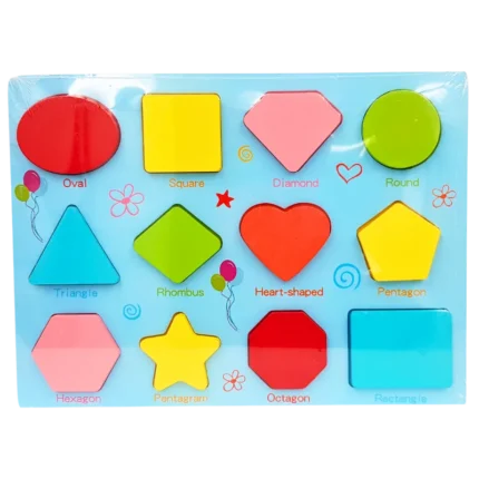 Wooden Puzzle Board, Shapes (13 Pieces)