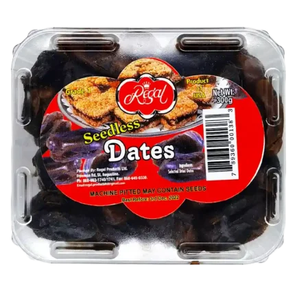 Explore your culinary creativity and try Regal Seedless Dates. A healthy alternative to add to your favorite dishes or enjoy by itself for a nutritious snack. Net Weight – 300g
