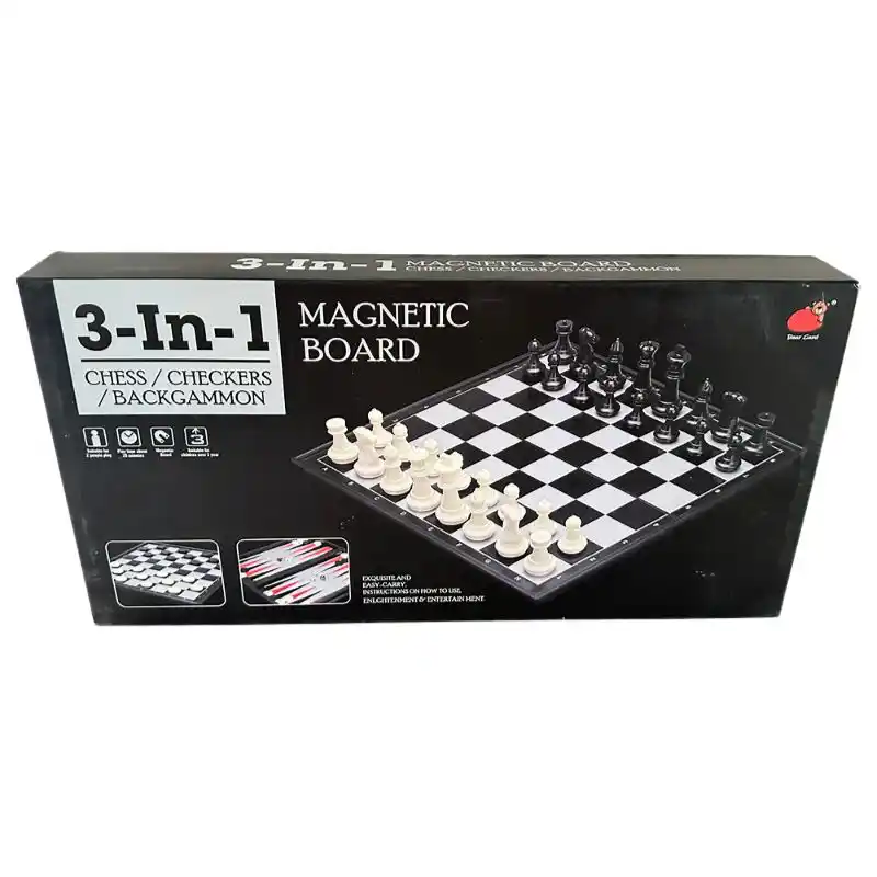 Bring three classic games into one compact, travel-ready set. The 3-in-1 Magnetic Game combines chess, checkers, and backgammon — ideal for family game nights, vacations, or on-the-go fun. Durable magnetic pieces stay securely attached to the board, so you can play even on a moving car or train without losing pieces. The foldable board doubles as storage — simply close it up after play and all pieces snap inside neatly for easy transport and storage. Whether you’re a beginner or a longtime board-game fan, this set offers variety and convenience in one affordable package.
