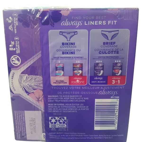 • Always Xtra Protection Daily Liners protect with LeakGuard Core + RapidDry to help keep you 5X drier (vs. Always Thin Daily Liners)