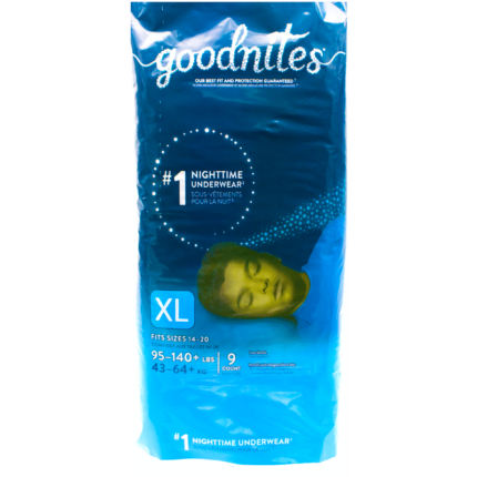 Help your child wake up dry and worry-free with Goodnites Night time Underwear for bedwetting. These disposable bedwetting pants feature reinforced, double leg barriers to help eliminate leaks and 5 layer protection to absorb & lock away wetness.