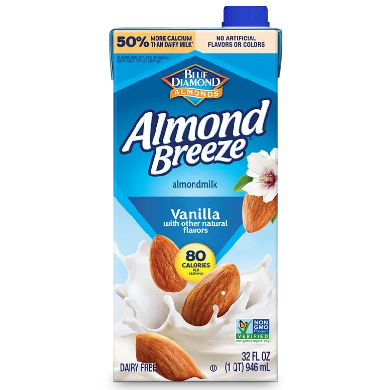We took natural vanilla flavor and blended in real California almonds to create a deliciously creamy dairy milk alternative. Plus, with 80 calories per cup and no saturated fat, shelf stable Almond Breeze Vanilla is the perfect addition to your pantry shelves.