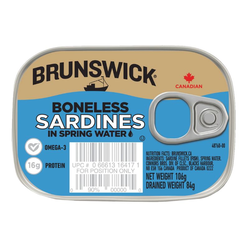 Introducing Brunswick Boneless Sardine In Spring, a premium seafood delicacy packed with flavor and nutrition. Each 106g can is filled with tender, boneless sardines that have been carefully selected and preserved in a savory spring water brine.
