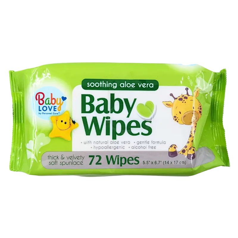 Baby Love by Personal Care, Baby Wipes are a specially designed to cleanse and soften your baby’s delicate skin. Formulated with natural Aloe Vera & Vitamin E to keep baby’s skin moisturizes and leave the skin feeling refreshed. With their mild cleansing solution they’re gentle enough for everyday use on your loved one’s.