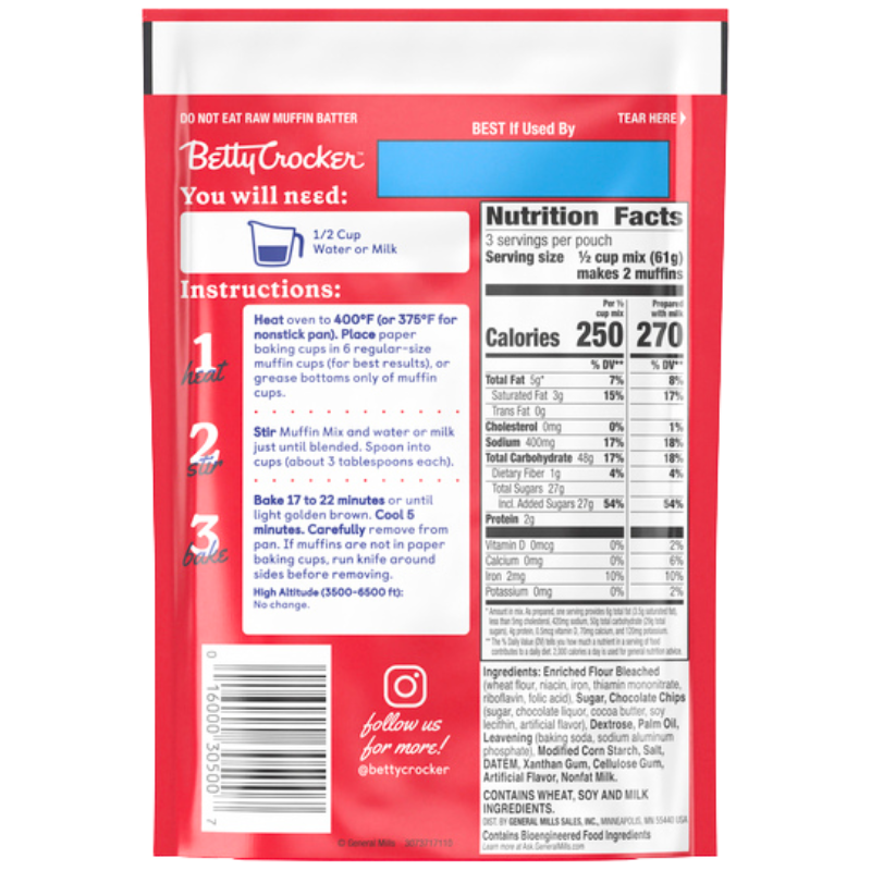 Betty Crocker, Muffin Mix, Chocolate Chip, 6.5oz