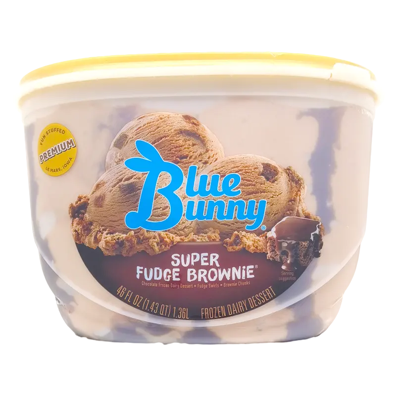Blue Bunny Super Fudge Brownie is fun in every spoonful. Chocolate frozen dairy dessert; fudge swirls and brownie chunks. This Signature flavor takes brownies to the next level.