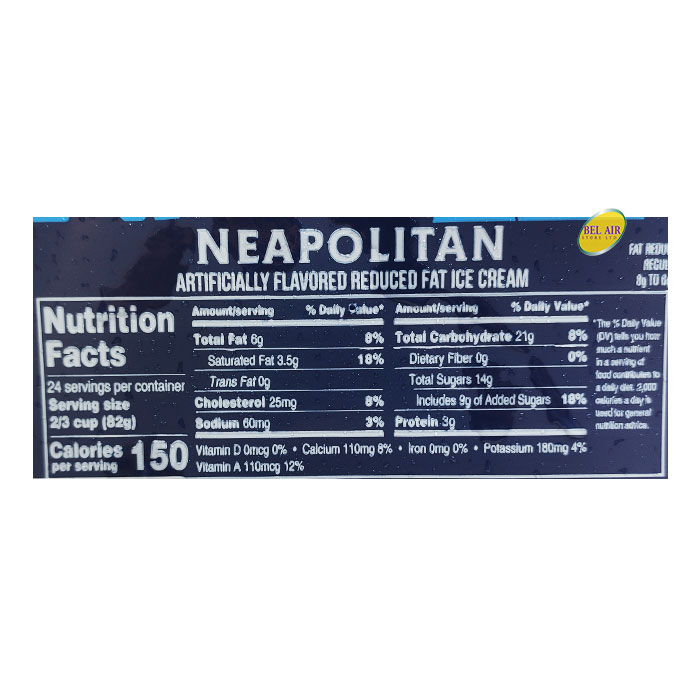 Nothing can beat the ultimate classic taste of Blue Ribbon Classics Neapolitan Ice Cream. Delicious layers of vanilla flavored, strawberry and chocolate reduced fat ice cream. A taste of something for everyone. Break out the ginormous scoopers, bowls, and spoons. Time to pop the lid off and get the party started!